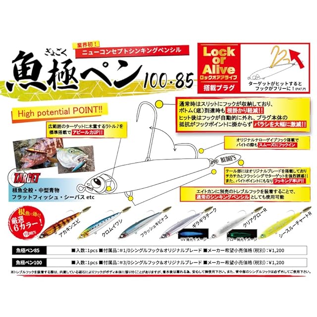 RUDIE'S(ルーディーズ)魚極ペン(ぎょごくぺん) (シースルーチャートR, 100mm 25g)