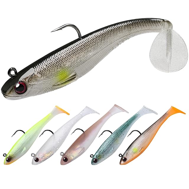 リアルな外観 - このバス釣り用ルアーは、流線型のボディと特別な3Dパドルテールを特徴とし、水流に合わせて自然に揺れ動き、ライフライクでダイナミックな外観を生み出します。精巧にデザインされたリアルな3Dアイと光の屈折による魚のパターンの徹底的なテストにより、ルアーはさらにリアルで魅力的になります。ウィードレス仕様により、あらゆるカバーを通しても問題なく使えます。