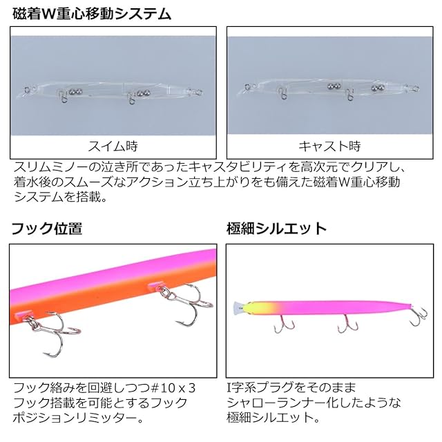 小沼正弥監修。密かに爆れ。バチ、サヨリ、シラス、激スレパターン対応、極細シルエットの水面直下攻略型ぶっ飛びシャローランナー
