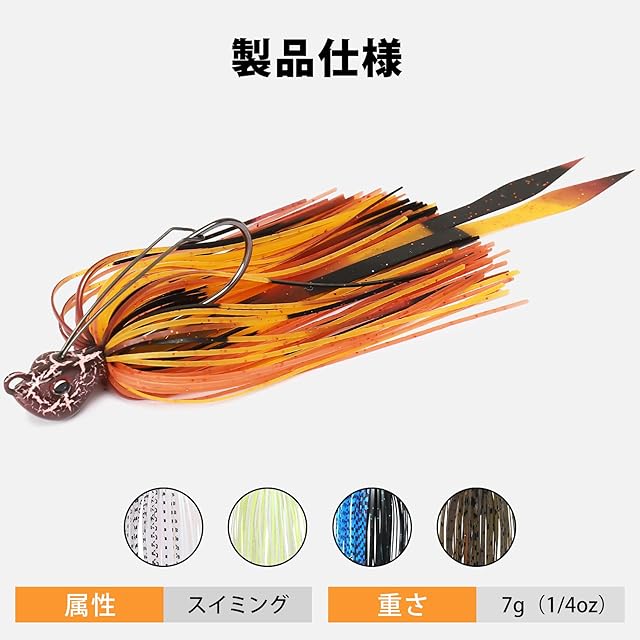 【活発なアクション】スムーズなアクションで大物を誘惑するように設計された淡水バスベイトは、生き生きとしたアクションを実現するマルチカラーのシリコンスカートとグリッターフォイルで作られており、餌が動いていないときでも水中で良いうねりを維持することができ、繊細で超現実的な動きと輪郭を実現可能です。さらに、さまざまな水域で使用できるように、さまざまな色のスイムベイトを提供しております。
