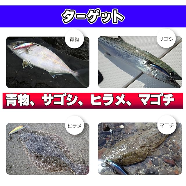 多彩なターゲット:青物、サゴシ、ヒラメ、マゴチに最適!守備範囲は多岐に渡り、ソルトウォーターのターゲットだけでなく、本流・渓流のトラウト狙いにも使用可能。