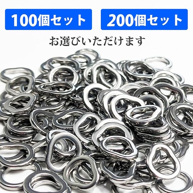 五重桔梗 ソリッドリング 釣り ひょうたん型 ジギング 溶接リング セット (200個, Lサイズ)