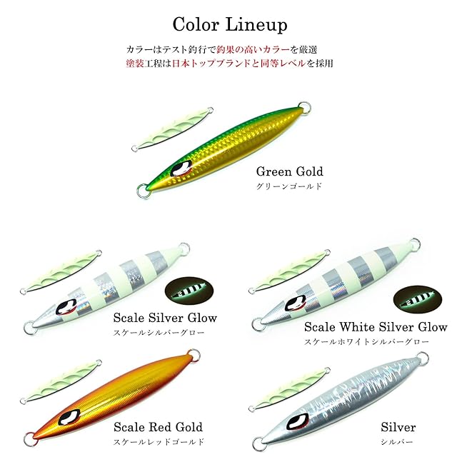 <ボトムネチネチパターンで根魚やカンパチを捕獲>ベタ底から10メートル以内がターゲットレンジの場合もその力を発揮。ショートフォールでもしっかり横を向き、ターゲットを焦らしバイトを誘発します。 <様々なターゲットにマッチする、釣果実績の多いカラーバリエーションを網羅>全国のアングラーから人気のカラーを厳選し、ハズレのないラインナップをご用意しております。