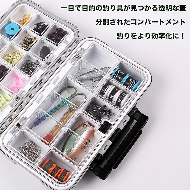 【多目的な収納】フック、ルアー、スワイベル、ジグ、シンカーなどに適しています。最大24個のコンパートメントで、釣りの道具やアクセサリーをきれいに整理できます。釣りのバックパックやベストのポケットにもぴったり収まり、持ち運びに便利です。