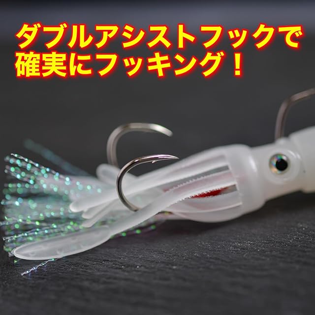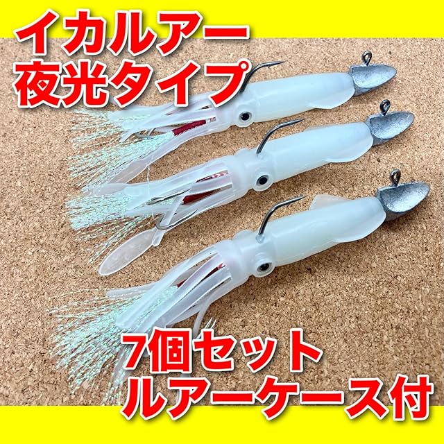 Bucht イカルアー 5.5インチ 地元漁師監修 ジグヘッド ダブルアシストフック付 ワーム タイラバ ルアー (夜光 7個)