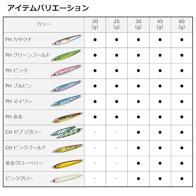 「より小さいシルエットで重いジグを」というニーズに応えた高比重素材ジグ。 青物のナブラやボイルはあるのに、従来のジグでは大きすぎて食わない、かといって小さいジグではポイントに届かない。ターゲットが極小のベイトを選んで捕食しているシチュエーションで爆発的な威力を発揮する。