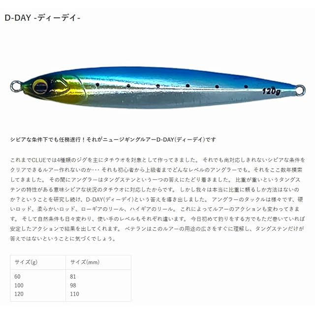 クルー CLUE メタルジグ D-DAY ディーデイ 120g #004 メッキイワシ