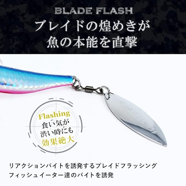 ◇風を切り裂く細身のフォルム ◇抜群の飛距離 ◇リアクションバイトを誘発するブレイドフラッシング ◇360°スピンブレードを標準搭載 ◇計算されたボディバランス ◇ターゲットフィールドに合わせてシングル・ダブル・トリプルフック装着可能 ◇サーチルアーとしても大活躍 ◇現地検査により安定した品質を管理