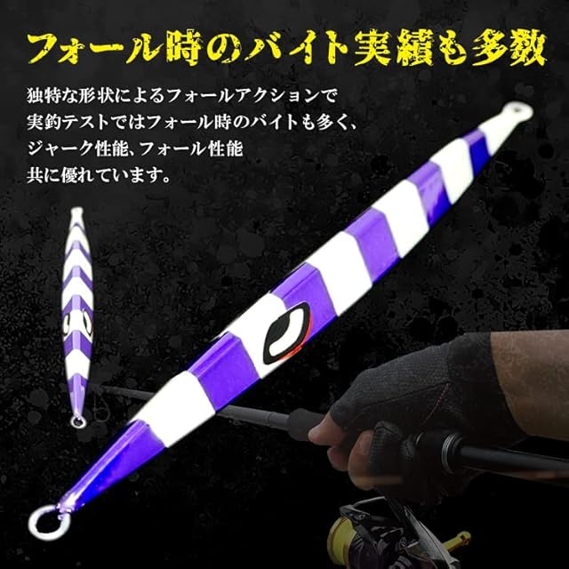 <フォール時のバイト実績も多数>独特な形状によるフォールアクションで実釣テストではフォール時のバイトも多く、ジャーク性能、フォール性能共に優れています。