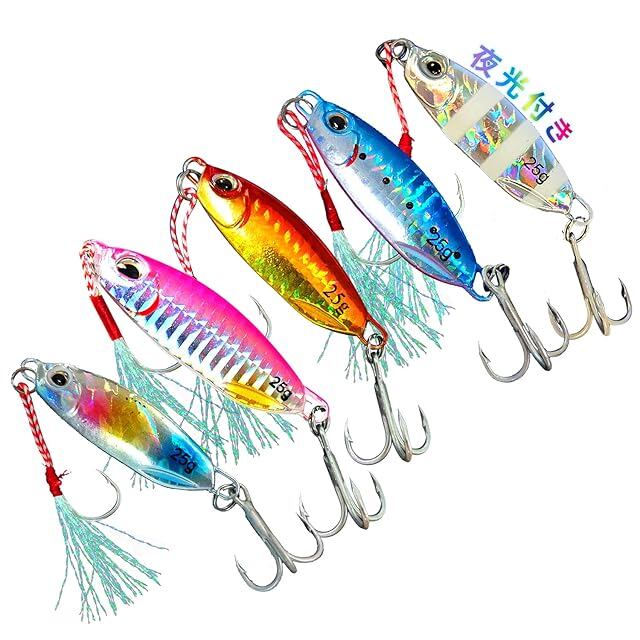 メタルジグ ルアー メタルジグセット アシストフック ルアーフィッシング 25g ハードルアー 5色入 よく釣れる 海釣り 遠投 (5個セット)