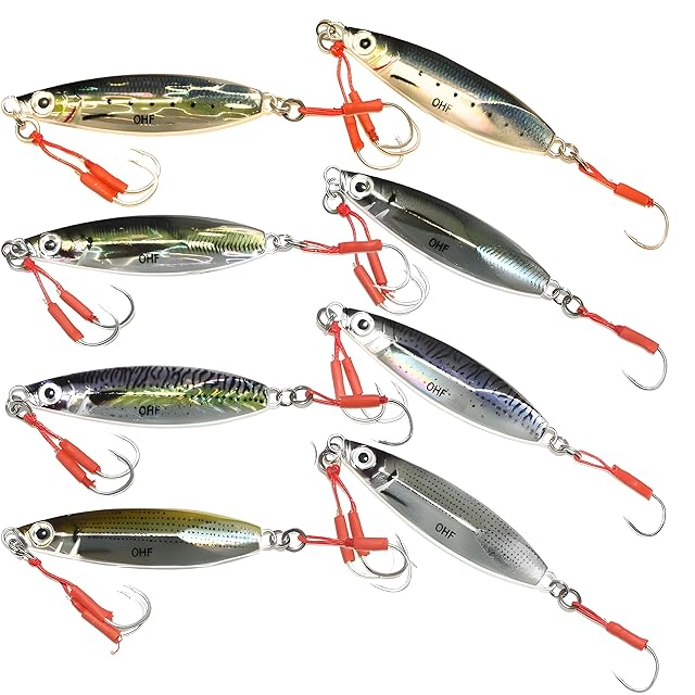 OHF メタルジグ セット 20g 30g 40g スロー ジギング ライブカラー アシストフック付き 8個セット (30g / 8色セット)
