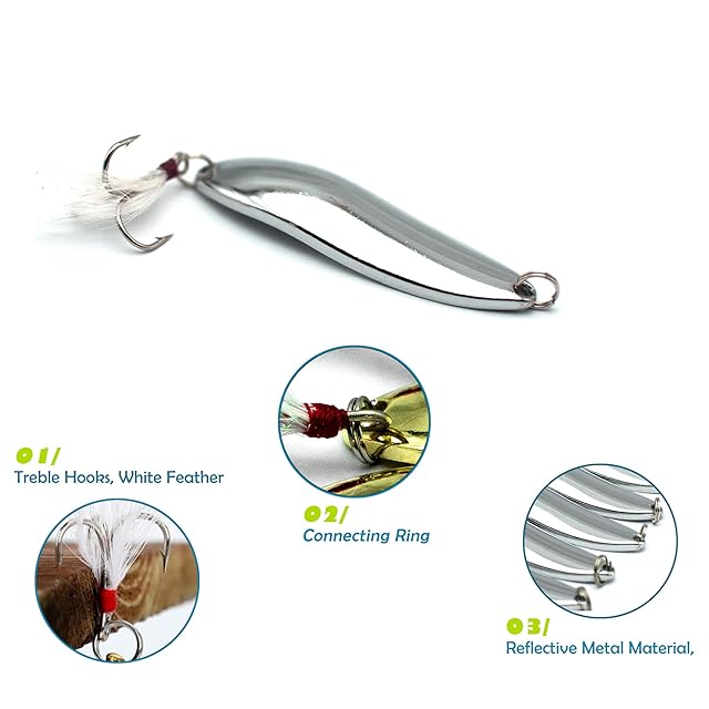 【幅広い用途】 - 釣り針ルアーは、ナマズ、パーチ、レッドフィッシュ、キングフィッシュ、ウォールアイ、バス、トラウト、鯛、マスキーなど、多くの種類の魚に広く適用されています。釣りスプーンベイトは淡水と海水の両方に適しています。 釣り愛好家に最適です。