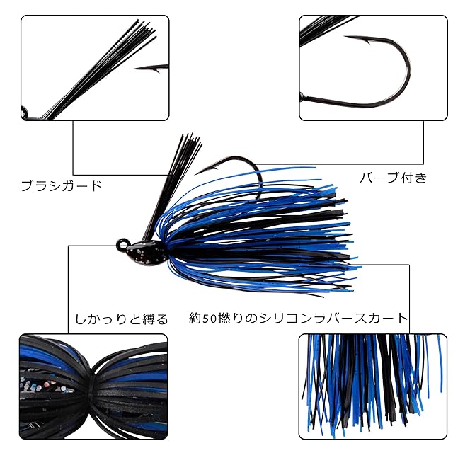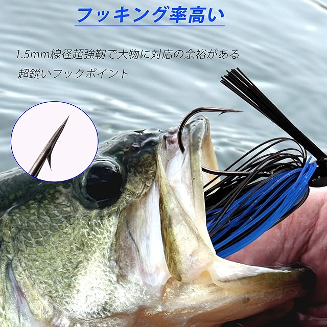 ??【フッキング性能高い】大物に対応できる太め線径約1.5mmで、鋭いフックポイント、なおシャンクが長いので、フッキング率が高いバス釣りラバージグ!