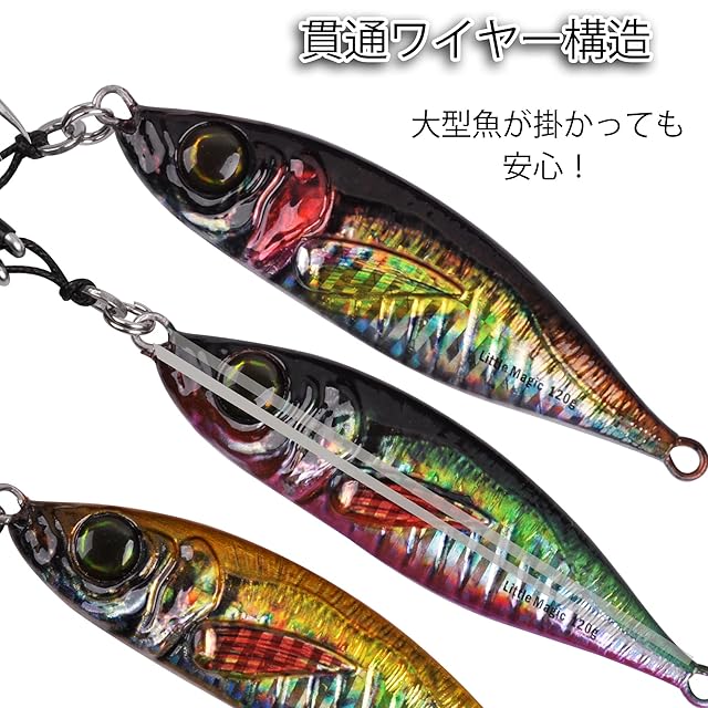 【強靭メタルジグ】ボディの内部の貫通ワイヤーの構造、強靭スプリットリング及び鋭くて高強度ステンレスフックは高いフッキング性能を持っているので、大型魚が掛かっても安心します!3カラーセレクトのメタルジグセットは異なるシーンにカラーチェンジでき、圧倒的なコストパフォーマンスを実現しました。根がかりなどのロストを心配せず使用できる!