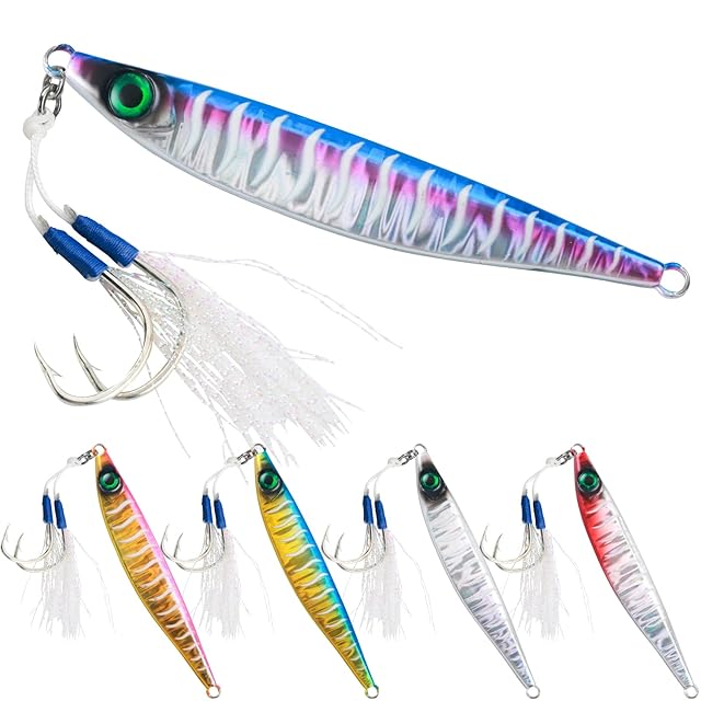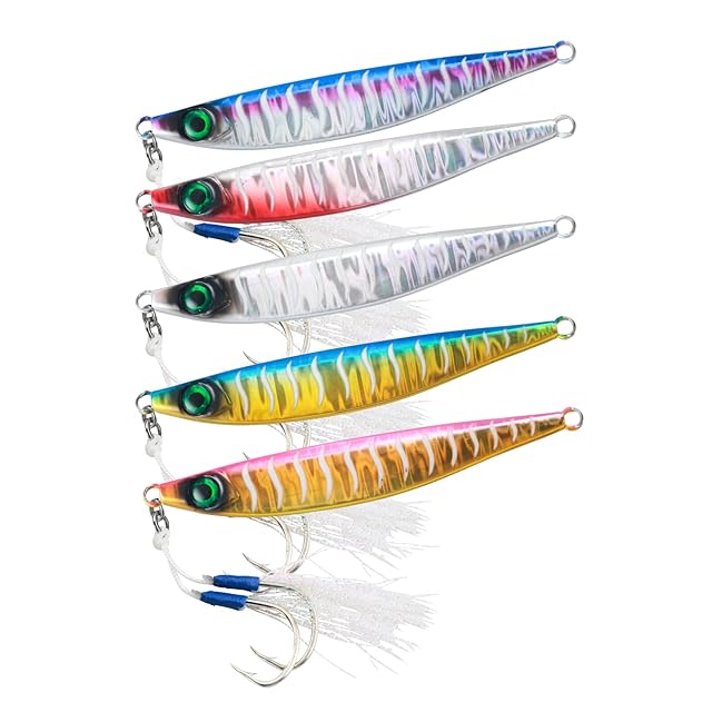 【釣れる!】ディは高強度の鉛材質を採用し、強度が高いです。メタルジグ*5色セット(5本)***重量:60g***サイズ:103cm/4.05インチ***フック:#1/0