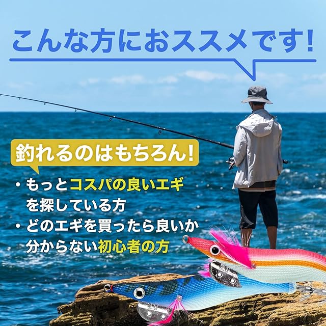【コスパ抜群】使用シーンに合わせて号数を3段階、本数を2パターンから選べる。コストパフォーマンスに優れた価格設定のため、エギングにつきもののロストを恐れることなく、釣りを楽しめる。