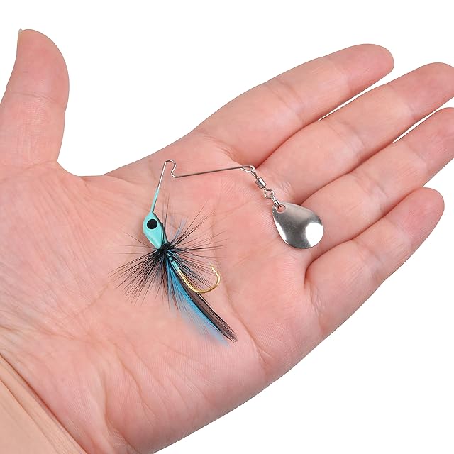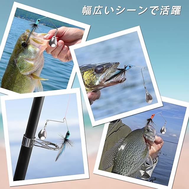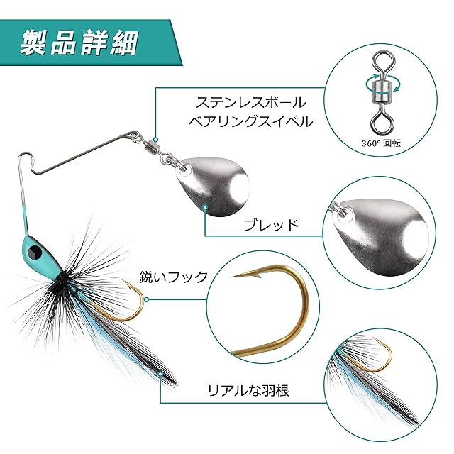 【アピール性抜群】フェザー付きスピナー系ルアーで、水中に到着後リトリーブなど動作をして、スローシンキングして、水面の保持時間を延ばし、光よりキラキラした反射のブレードとの相乗効果により、魚を強くアピールする!