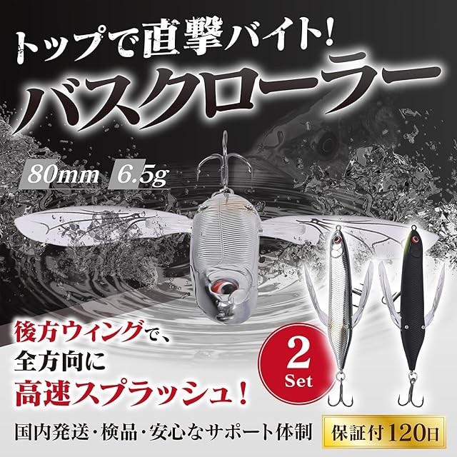 ≪スペック≫ 80mm 6.5g / クローラー / 固定重心 / フローティング トップウォーター / 後方ウィング / トレブルフック装備(#6) / 2色2個入り
