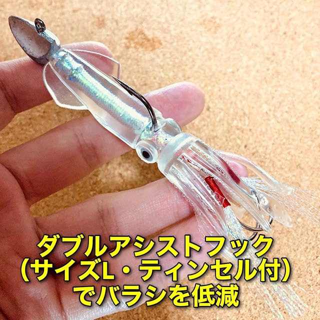 Bucht イカルアー 5.5インチ 地元漁師監修 ジグヘッド ダブルアシストフック付 ワーム タイラバ ルアー (クリア 7個)