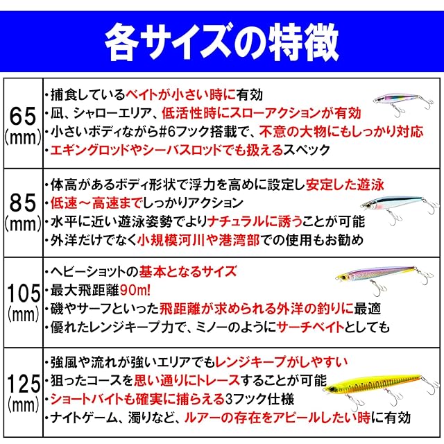 用途:シーバス ペンシルベイト 海水 堤防 磯 サーフ 河口 船 ハードルアー