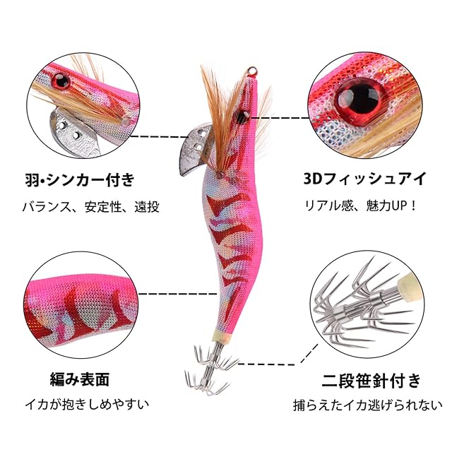 ⭐【釣り対象】:ケンサキイカ、ヤリイカ、ジンドウイカ、スルメイカ やタコなどのルアー釣り道具です。