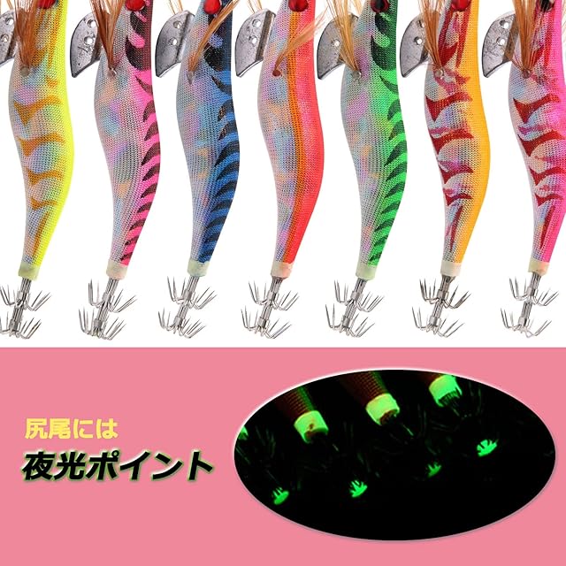 ⭐【アピール】:色彩豊富の布地と夜光のあるエギデザインで、イカやタコなど察知を捕えやすいです。