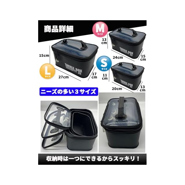 nda-style EVA素材 タックルボックス マルチ 釣り EVA フィッシング リール ルアーケース タックルケース ルアーボックス 釣り用ケース ワーム ルアー BOX (透明, SML3個セット)