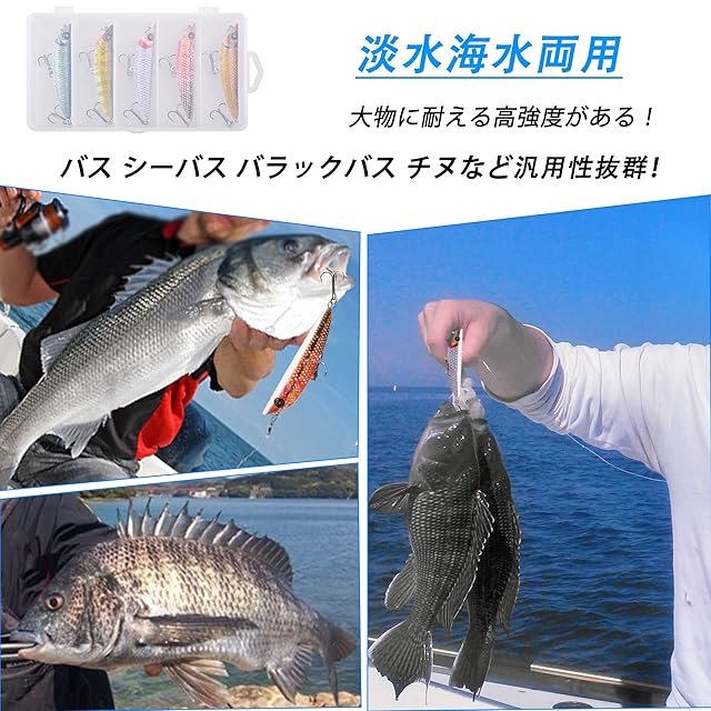 サイズ:80mm サイズは商品のイメージをご参照ください。 重量:約9.2g/本 (誤差:約±0.5g) カラー:5色セット 数:5本セット 主な対応魚種:ブラックバス ナマズ チヌ 青物等 防水ケース付き、ルアー間のぶつかり軽減し、ルアーを保護します。 タイプ:フローティングペンシル ペンシルベイトはリップがついていない為、引いてくるとフラフラ~と流れに身を任せるように泳ぎます。表層でのコントロールが簡単になり、水の抵抗を受けにくく、空気抵抗が少なく、飛べるし、広う範囲のターゲットが釣れる可能です! 流線型フォルムとスモールサイズで、空気抵抗を低減、飛距離抜群 水面弱った魚のように演出させることが出来る リップがない為に潜らず、ずっと浮いたまま、水面を意識したシーバスなどに特に効果的なルアーです。