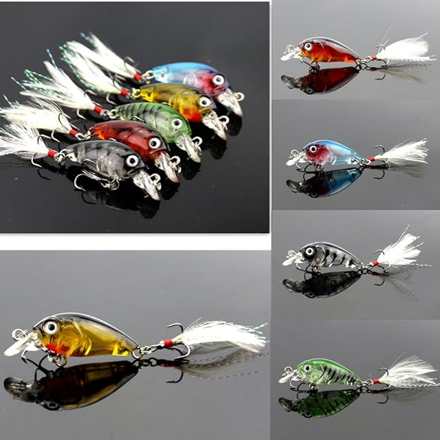 商品名:12個/ロット釣りルアーセットクランクベイトミニクランクベイト3Dフィッシュアイ人工ルアーベイト(フェザー付き)リアルライクなシミュレーション擬似ルアー