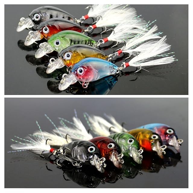 12個/ロット釣りルアーセットクランクベイトミニクランクベイト3Dフィッシュアイ人工ルアーベイト(フェザー付き)リアルライクなシミュレーション擬似ルアー