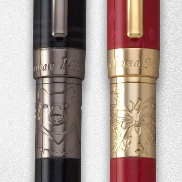 【その他】台湾に生息し、絶滅危惧種に指定されている「ベンガルヤマネコ」がモチーフ。胴軸とキャップはメタリックなエナメルのラッカー仕上げ。野生動物の装飾やペン軸、天冠、クリップなどはそれぞれのイメージカラーに合わせて貴金属色の鍍金仕上げを施しました。胴軸は適度な太さがあり、絶妙な重さが心地よい筆圧を生みスムーズに筆が走ります。