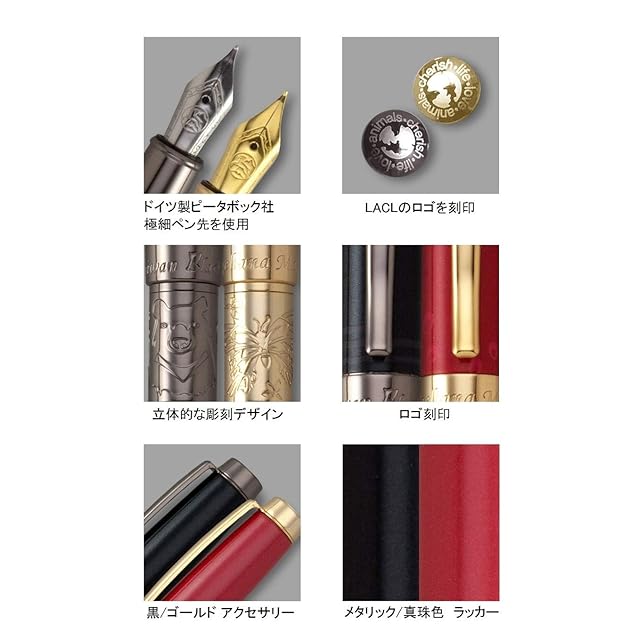 【仕様】胴軸やキャップは高級感ある真鍮製、野生動物の装飾、ペン軸、天冠、クリップはイメージカラーに合わせた貴金属色の鍍金仕上げ