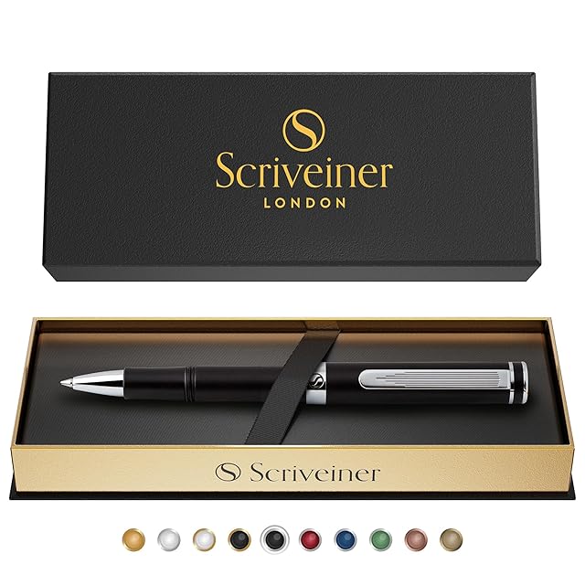 ★ 本物の高級ペンの感触をお楽しみください - Scriveiner製の見事な高級ボール ペン。マットブラックの耐傷性コーティングで陽極酸化処理されたアルミニウム、シルバークローム仕上げ。英国のブティックブランドによるプレミアム品質とさりげない高級感