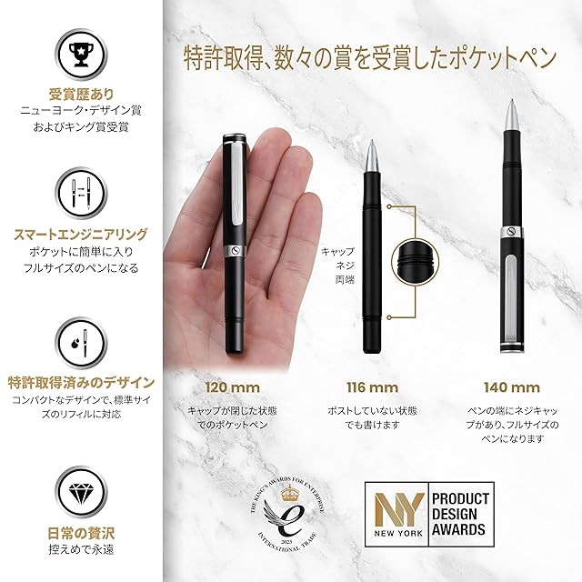 ★ 毎日の使いたくなる、最高の書き心地 - キャップを両端にしっかりとねじ込むことができるように精密に設計されています。キャップを閉めると、ポケットに簡単に収まる短いペンです。キャップを付けた状態では、手になじむ絶妙なバランスのフルサイズペンです。