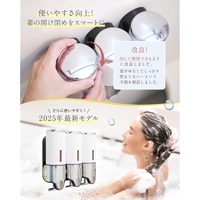【日本企業独自開発】当店独自の形状により、バスルームを"スッキリ彩る"シャンプーディスペンサー
