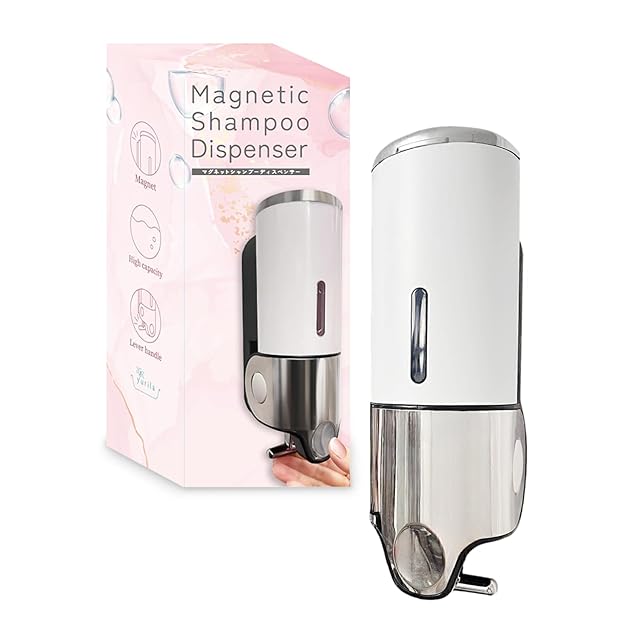 【レタスクラブ掲載】 シャンプーディスペンサー マグネット ディスペンサー シャンプーボトル 大容量 強力 おしゃれ 壁掛け 日本企業独自開発 yurila (アイスホワイト, 1本セット)
