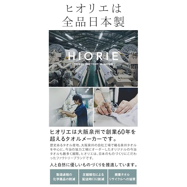 【お洗濯ラクチン&節約】ヒオリエのビッグフェイスタオルは、バスタオル代わりにお使いいただいているご家庭多数!大人の体にも使えて、小さなお子様が一人で体を拭くのにもちょうどいいサイズです。フェイスタオルのようにコンパクトに収納できます。お洗濯量もぐっと減り、干すスペースも少なく済んで楽チン!太番手の糸を使用した、毛足が長めのロングパイルだからふっかりと包みこまれる肌触りです。 ※お届け時の包装されたタオルは圧縮されていて薄くなっています。お洗濯をして頂きますとふわっとパイルが立ち、約2倍にボリュームが増します。#バスタオルやめました
