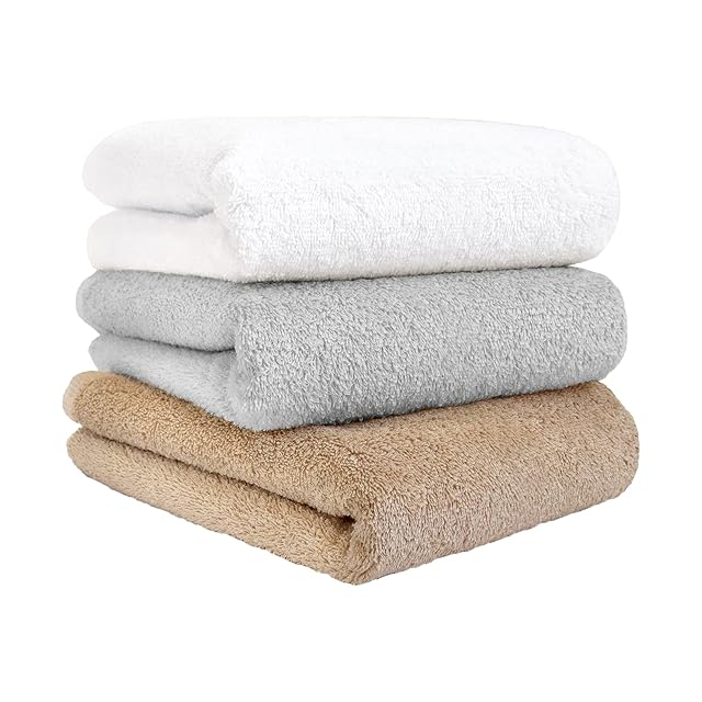 hiorie(ヒオリエ) ホテルスタイルタオル ビッグフェイスタオル 日本製 バスタオル代用にも最適 ふかふか 吸水 綿100% 無地 泉州タオル 選べる18色 3枚セット (アソート3色01)