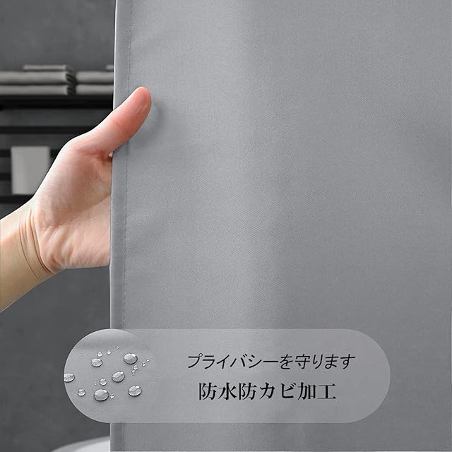 【保温・デザイン】断熱性がよく、部屋暖房ロス抑制、保温効果があり、寒い冬でも安心できるバスカーテン。シンプルな無地の灰色のデザインで、いつもバスタイムを快適にする保温シャワーカーテンです。