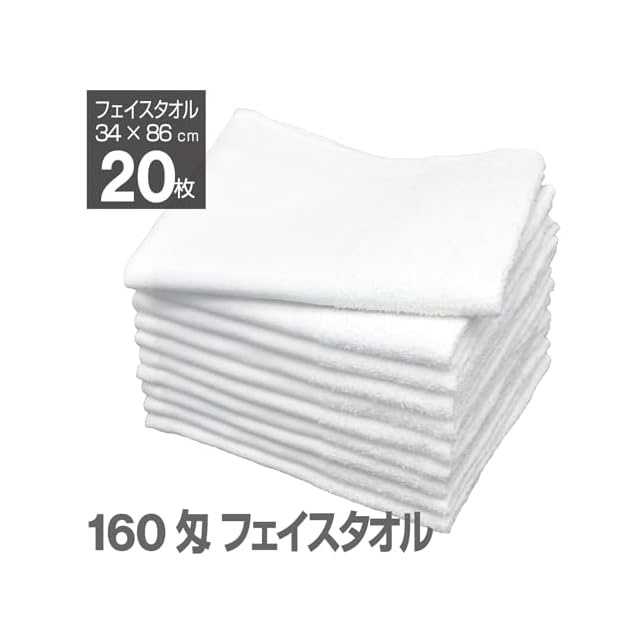 19inch フェイスタオル 20枚 160匁 白 吸水力と速乾性に 薄手のフェイスタオル 20枚セット タオル 様々な用途で使える長めのサイズ 吸水タオル 速乾タオル フェイシャルタオル タオルセット 洗顔タオル 温泉 タオル 白色 20枚入
