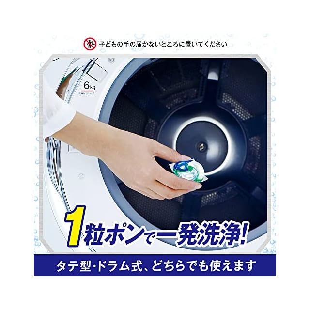 使用方法 洗濯槽の底に投入。それにより、洗剤外側のフィルムは効果的に水に溶けます。 30L~65L (2kg~6kg) 1粒 65L以上 (6kg以上) 2粒がおススメ! 洗剤投入口には入れない