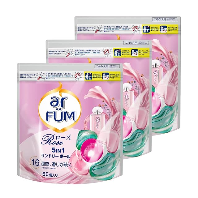 【韓国1.2億個販売突破】洗濯洗剤 アフューム arfum ローズ ROSE ジェル ボール型 5in1 柔軟剤入り 大容量 詰替(詰め替え) 日本製 (大容量60粒×3袋)