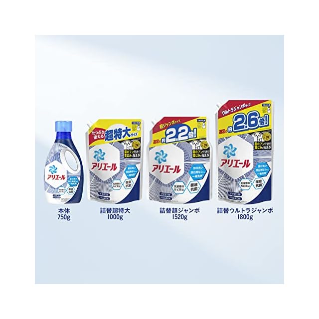 商品名:【まとめ買い】 アリエール バイオサイエンス 洗濯洗剤 液体 抗菌&菌のエサまで除去 詰め替え 超ウルトラジャンボ 約2.8倍 (1900g) × 2個