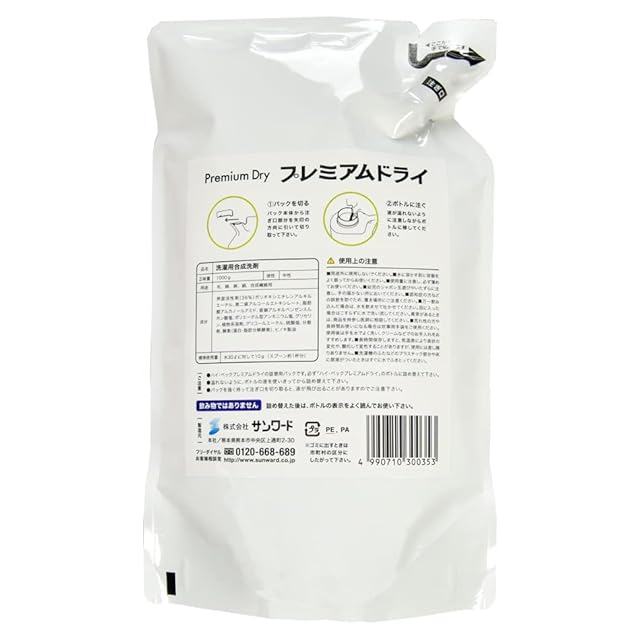 ハイベックドライ洗剤中最高品質のプレミアムドライに詰替え用ができました。 容量は1,000gです。ボトルに移してご使用ください。 大事なお洋服の洗濯にご使用ください。攪拌しなくても5分の浸け置きで大半の汚れは取れますので、浸け置き洗い、又は洗濯機おうちクリーニングコースで洗ってください。