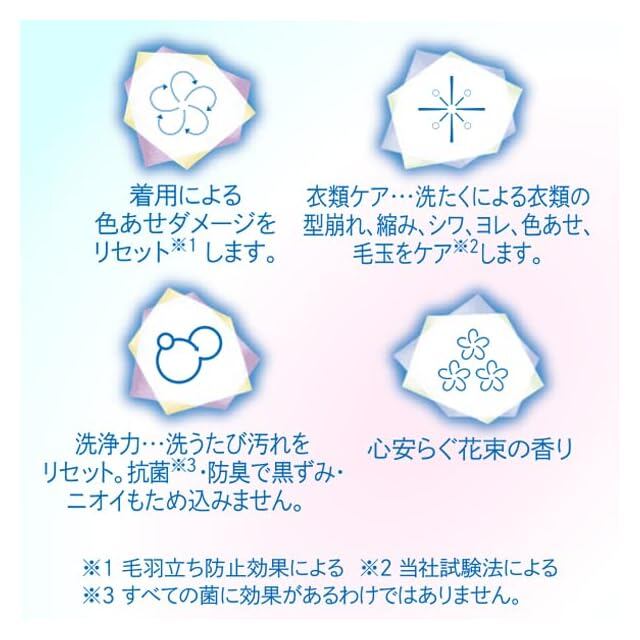 成 分 : 〇洗剤 界面活性剤 (25% ポリオキシアルキレンアルキルエーテル)、安定化剤、色落ち防止剤、酵素(毛羽立ち防止成分)、抗菌剤 〇柔軟剤 界面活性剤(エステル型ジアルキルアンモニウム塩)、安定化剤、シワ防止剤、色褪せ防止剤、香料、抗菌剤