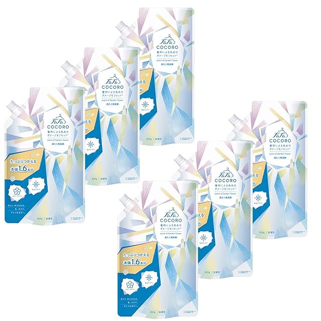ファーファ 洗濯用 液体 洗剤 ココロ 心安らぐ 花束 の香り 詰替 ( 800g ) 6個セット<br><br> ●あらう、あらわれる。色、カタチ、キレイなままへ。ファーファ ココロ シリーズがリニューアル。<br> ●たっぷり使える詰替用は本体1.6本分。<br> ●着用による色あせダメージをリセット。※<br> ・着用中に発生する毛羽立ちをカットして白化現象(=色あせ)を防止するという新しいメカニズムで、色あせによる衣類のダメージをリセットします。<br>※毛羽立ち防止効果による。<br>●衣類ケアに対応可能。<br> ・洗濯による衣類の型崩れ、縮み、シワ、ヨレ、色褪せ、毛玉をケア※します。<br>・特に原因となる毛羽立ちをカットすることで、毛玉の発生を軽減します。<br>※当社試験法による。<br>●汚れをリセットする洗浄力。<br>・洗うたびに衣類の汚れをリセット。<br>・抗菌※防臭で黒ずみやニオイもため込みません。<br>※すべての菌に効果があるわけではありません。<br>●心安らぐ花束の香り。<br>・やさしい花束の香りはそのままです。<br>●すすぎ1回。<br>●蛍光剤、漂白剤無添加。<br>●ドラム式洗濯機にも使用できます。<br>●手肌に優しい中性タイプ。<br>●毛・絹にもご使用できます。<br><br>< 使用方法 ><br>●お洗濯前に必ず確認してください。<br>衣類の取扱い表示を確認する。※取扱い表示のない衣類は洗えません。<br> < × 洗えないもの><br>・レーヨン・キュプラの素材<br>・皮革・和服(型くずれ、縮むことがある)<br>・表面加工があるもの<br>・色落ちするもの(色落ちが心配な衣類は、原液を衣類の目立たない部分につけて5分ほどおき、変色、色落ちするものは洗わないでください。)<br>< 〇 洗えるもの><br>・普段のお洗たく(タオル・肌着など)にお使いいただけます。<br> ただし、取扱い表示のある衣類(おしゃれ着など)の場合は、取扱い表示に従ってお洗たくしてください。<br> 洗たく後は、すぐに形を整え平干しなどをおすすめします。<br><デリケートな衣類を洗う場合><br>・つけおき洗い:5~15分程度衣類を動かさずに洗たく液につけおく。軽く脱水後、1回すすぐ。<br>・手洗い:やさしく押し洗いし、軽く脱水後、1回すすぐ。<br>・洗たく機:必ず洗たくネットに入れ、「おしゃれ着・ドライコース」等を使用して、脱水は1分以内で、1回すすぐ。<br> <br>< 使用上の注意 ><br> ・子供の手が届く所に置かないでください。<br> ・認知症の方等の誤飲を防ぐため、置き場所に注意してください。<br> ・用途以外に使わないでください。<br> ・荒れ性の方や長時間使用する場合、また原液で使う場合は炊事用手袋を使用してください。<br> ・使用後は手を水でよく洗い、クリーム等でお手入れをしてください。<br>・ 洗濯機のフタ等のプラスチック部分に洗剤がついたまま放置すると痛むことがあるので水ですぐにふきとってください。<br> ・高温や低温、直射日光等を避けて保管してください。<br> ・やわらかい材質のため、持ち運びや保管時の破損に注意してください。