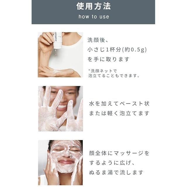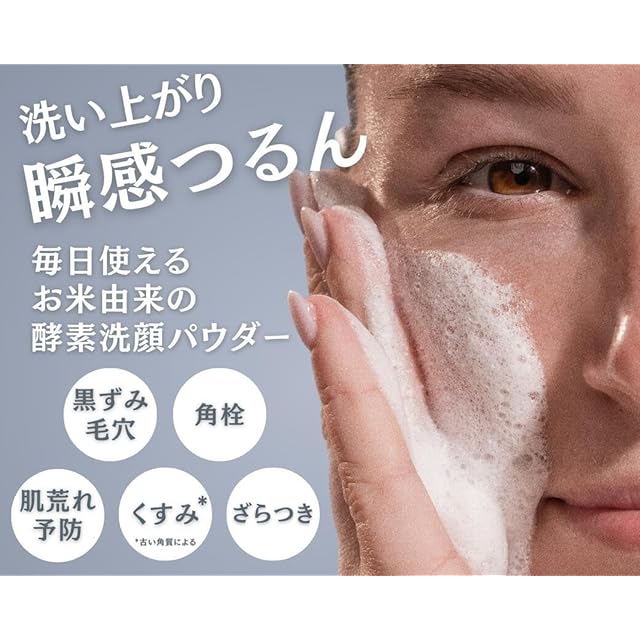 【角質ケアで美肌をサポート】 ①毛穴汚れをしっかりケア:酵素洗顔パウダーで毛穴の黒ずみや小鼻の汚れをやさしく洗い流し、すっきりとした滑らかな肌触りをサポートします。 ②メイクのりをサポート:角質ケアで肌の表面を整えることで、メイクの仕上がりをより美しく見せる手助けをします。 ③化粧水/美容液のなじみをサポート:毎日の角質ケアにより、普段お使いのスキンケアアイテムがより肌になじみやすくなるようにサポートします。 ④健やかな肌を保つ:毎日の角質ケアで、肌をなめらかに整え、健やかな状態を保つサポートをします。 ⑤肌を明るい印象に:酵素洗顔で古い角質をやさしく除去することによってくすみや黒ずみ、ざらつきのない明るい印象の肌へ導きます。
