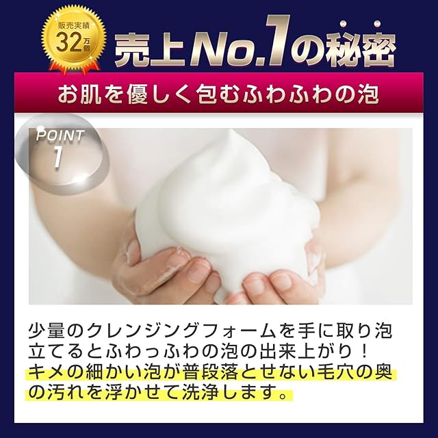 【美肌をかなえるポイント】(1)汚れをしっかりからめとるもっちり泡。(2)潤いを与えながら、メイクも毛穴の黒ずみもスッキリ落とす天然由来のスクラブ。(3)角質を柔らかくして、しっとり肌へ導くホホバ油とイオウ