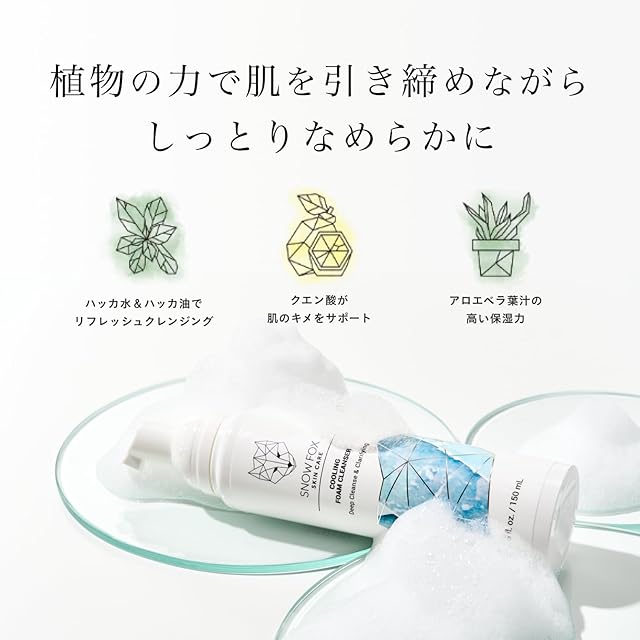 【SNOW FOX】皮膚科医共同開発 クーリングフォームクレンザー 150ml 洗顔 濃密泡 クレンジング メイク落とし スキンケア 毛穴 オイリー肌 敏感肌 保湿 肌荒れ 黒ずみ