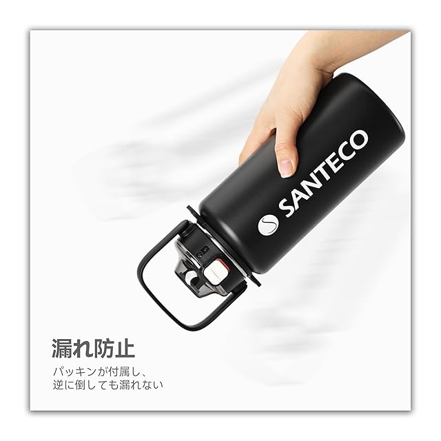 SANTECO 水筒 真空断熱スポーツボトル 1.2L 取りはずしでき肩に 保冷 保温 魔法瓶 ストロー付き 直飲み スポーツドリンク対応 おしゃれ 広口 ブラック